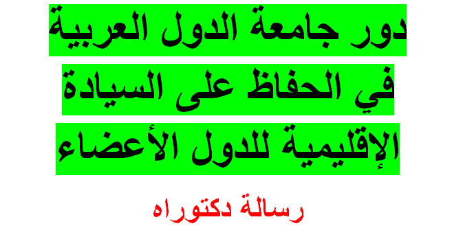 دور جامعة الدول العربية في الحفاظ على السيادة الإقليمية للدول الأعضاء Pdf