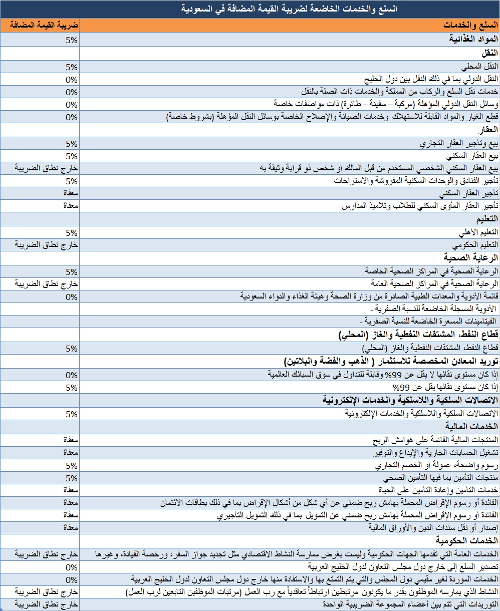 السلع الخاضعة لضريبة القيمة المضافة السعودية
