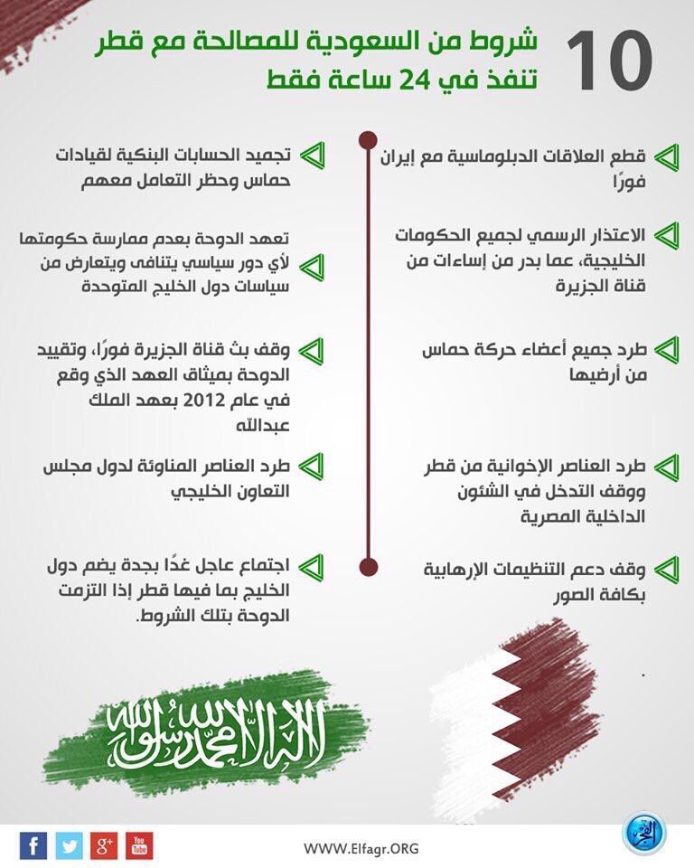 General On Twitter هذي ال 10 شروط الصلح التي اشترطتها المملكة العربية السعودية على قطر قطع العلاقات مع قطر