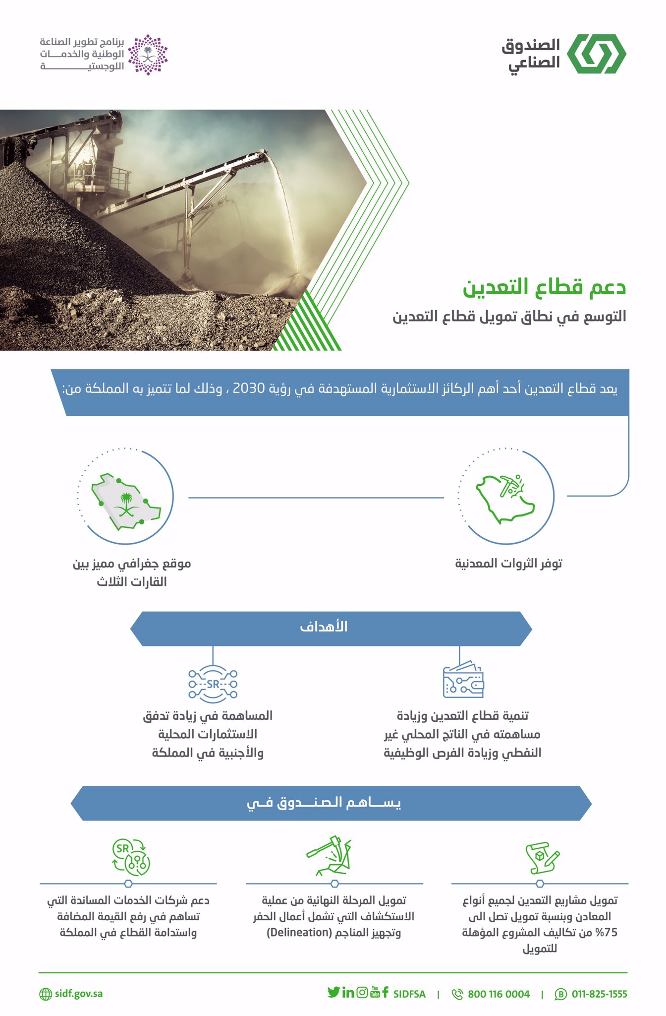 الصندوق الصناعي Sidf On Twitter الصندوق الصناعي يوس ع نطاق تمويل قطاع التعدين باعتباره من القطاعات التي يمولها الصندوق إلى جانب قطاعات الصناعة الطاقة والخدمات اللوجستية امتداد ا لدوره كممكن مالي رئيس لبرنامج تطوير