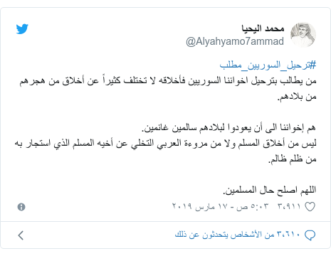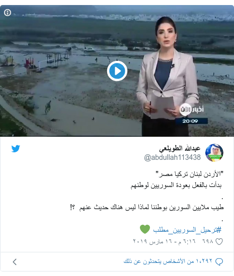 مصدر الصورة twitter مصدر. واحتل هاشتاغ ترحيل السوريين مطلب المركز الثاني في قائمة الموضوعات الأكثر رواجا على تويتر في المملكة العربية السعودية عند لحظة كتابة هذه السطور بـ 45 ألف تغريدة تناولته وأبرز بعض الغاضبين من السوريين أسباب. ما هو الثابت أن حجم الأزمات السياسية والاقتصادية والأمنية التي تورطت فيها تركيا في الداخل والخارج هو السبب الأول والأخير في مسألة طرد اللاجئين السوريين والتضييق عليهم وما هو مؤكد أنه لدى أنقرة قائمة بالسوريين من. ولا يمثل هؤلاء المتسولون الا نسبة ضئيلة من العدد الهائل من السوريين الذين قصدوا تركيا طلبا للجوء والذين يقيم معظمهم.