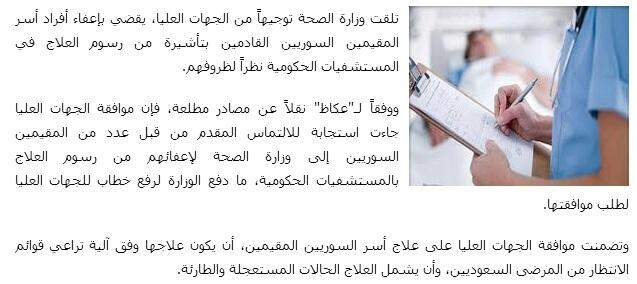 هاشتاق العرب On Twitter توجيها من الجهات العليا علاج مجاني لأسر المقيمين السوريين في المستشفيات الحكومية بـ السعودية Http T Co Enfwdidhjd