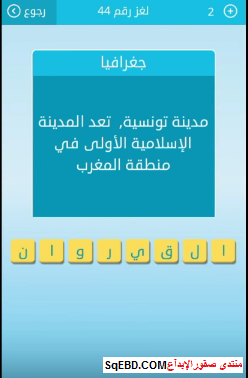 حل سؤال مدينة تونسية تعد المدينة الاسلامية الاولى فى منطقة المغرب من اللغز رقم 44 من لعبة رشفة للم صقور الإبدآع
