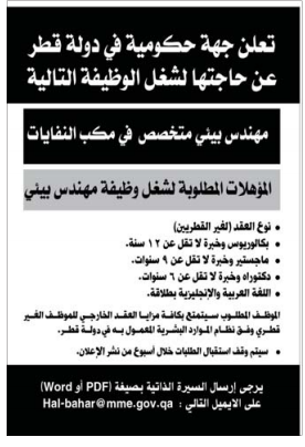 وظائف حكومية في قطر للمهندسين وظائف شاغرة فى قطر